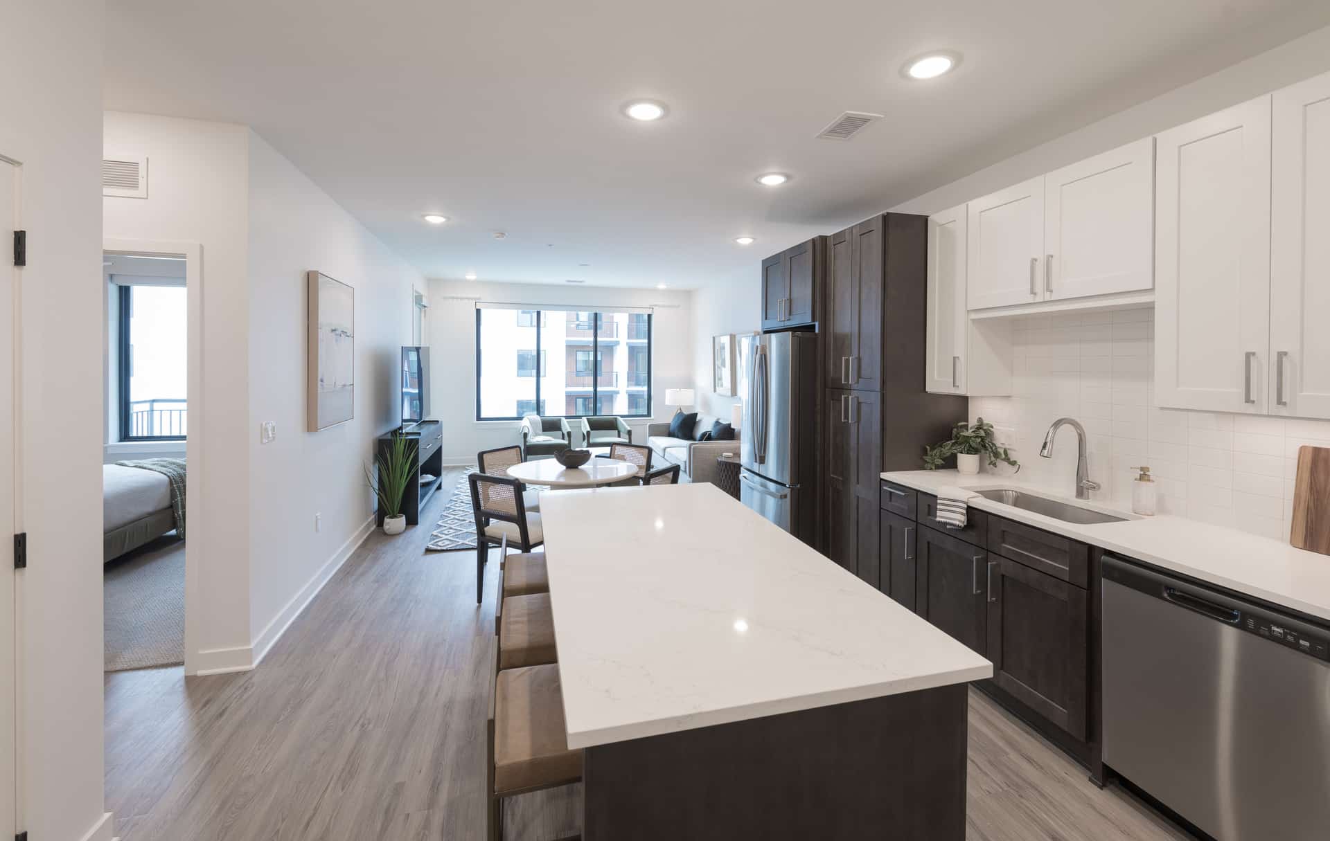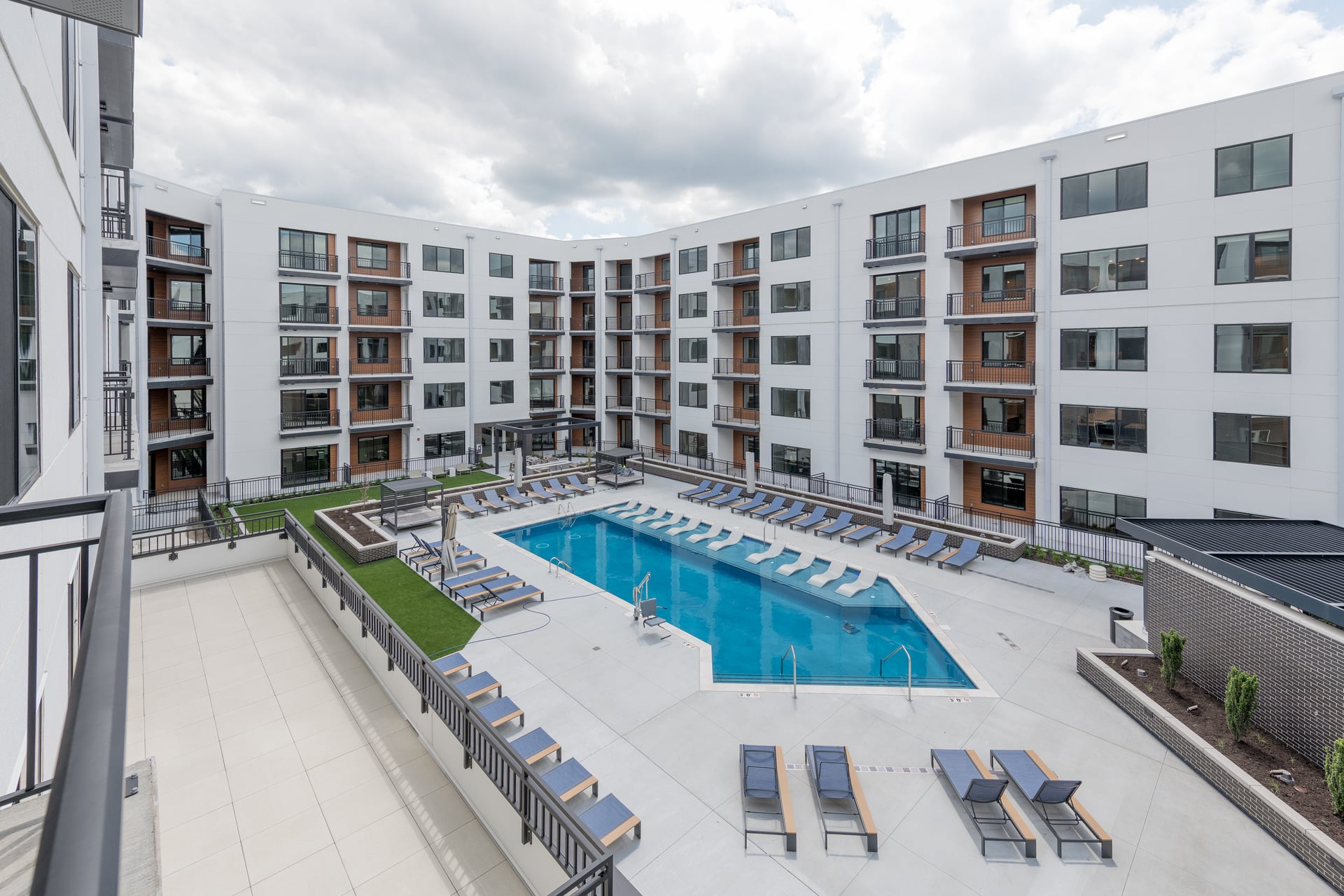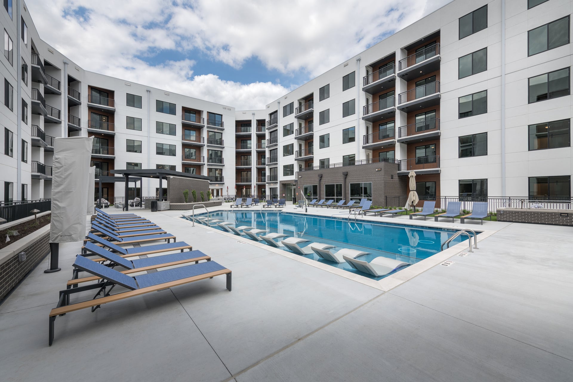 In addition to the architectural design, the team focused on creating an elevated resident experience and an enticing new option for staff and students at the nearby campus. The Hudson not only features amenities like a fitness center, pet-friendly areas, resort-like pool and courtyard – but an elevated clubroom on the top floor for residents to take advantage of the picturesque views, including Downtown Kansas City and the KU Medical campus.