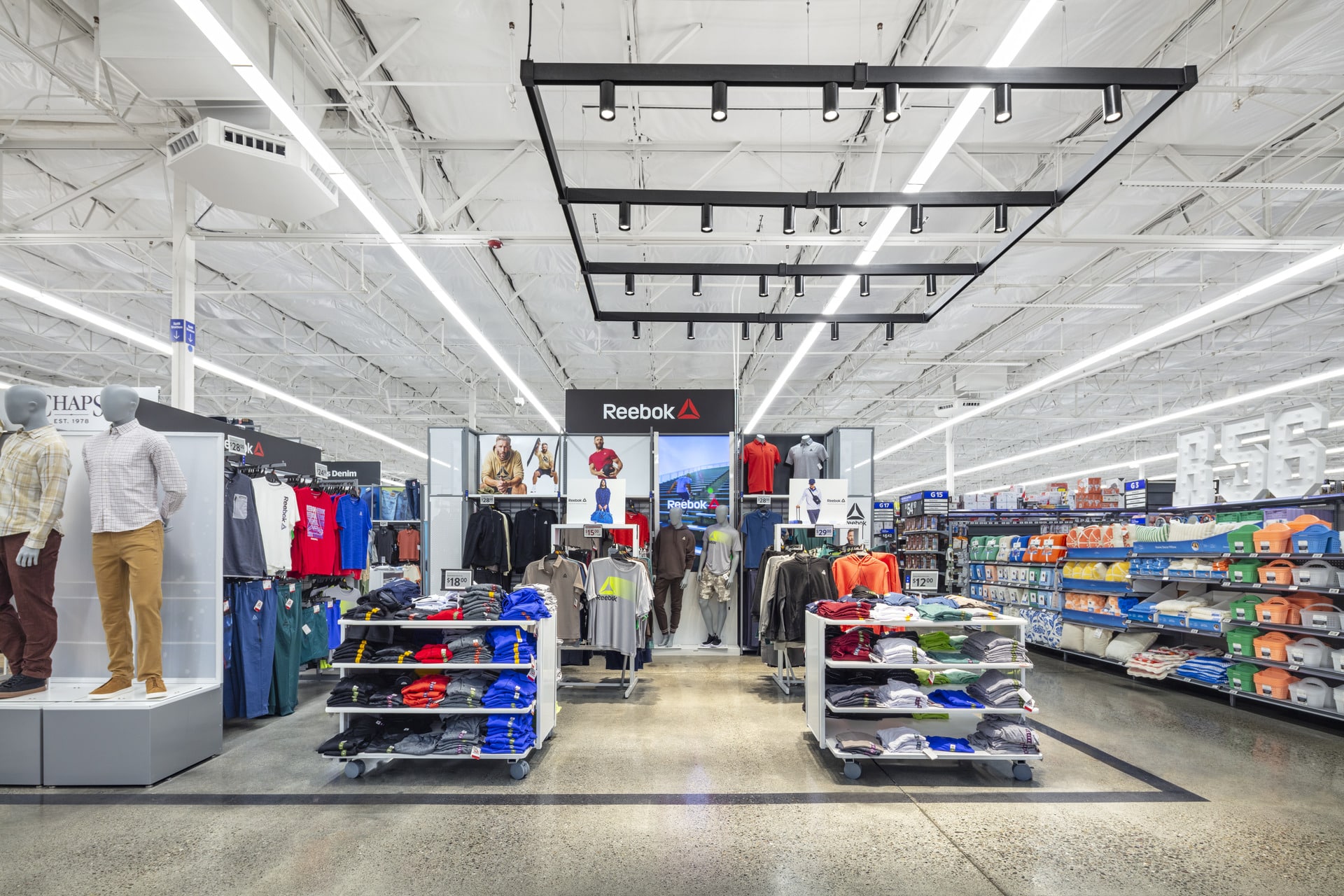 In the grocery section, the redesign provides an intuitive and engaging progression throughout the store. A significant part of expanding the grocery section involved installing roof-mounted refrigeration equipment. Through careful coordination with MEPs concerning equipment placement and structural reinforcement, the team installed the equipment on the roof while the store remained open for patrons.